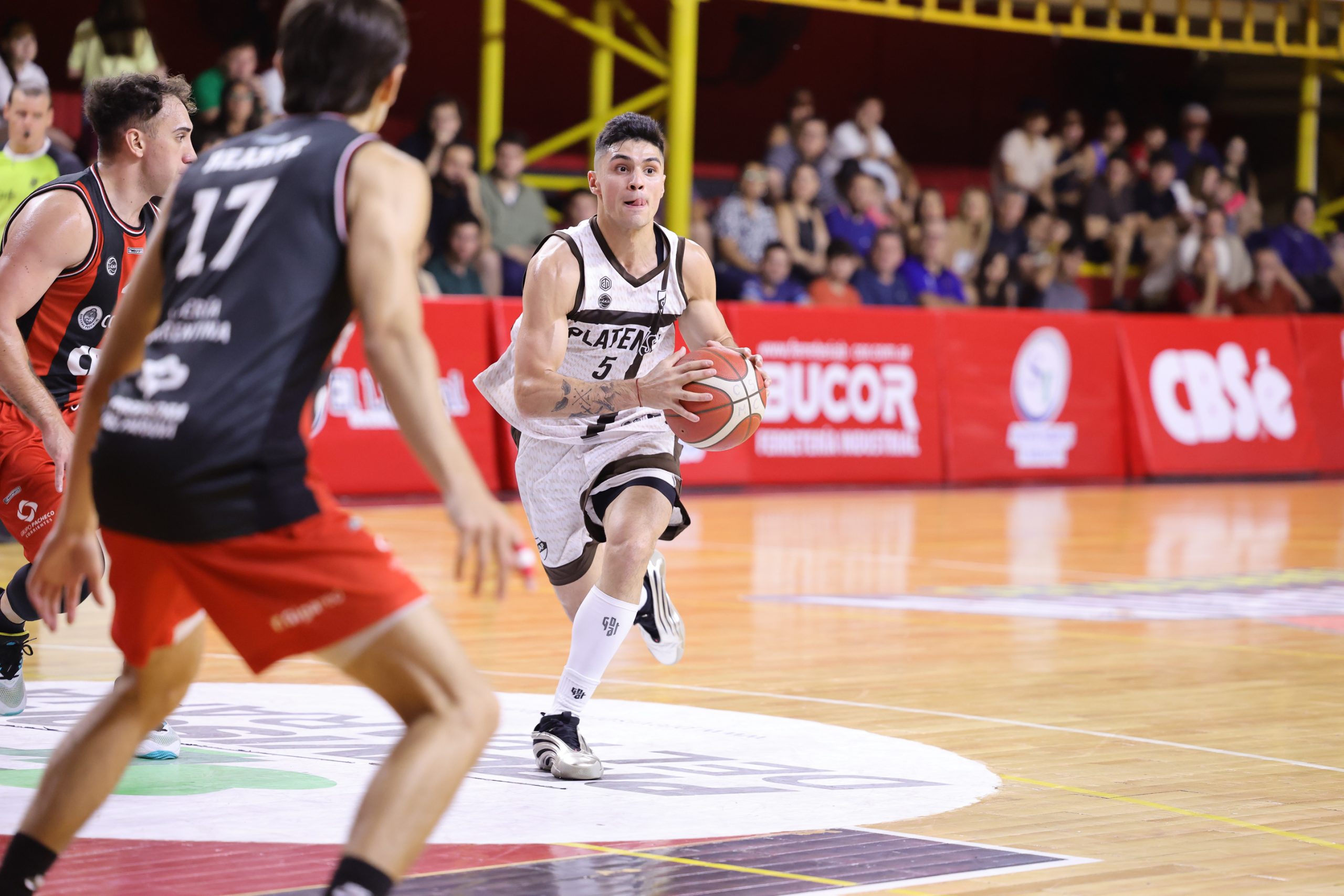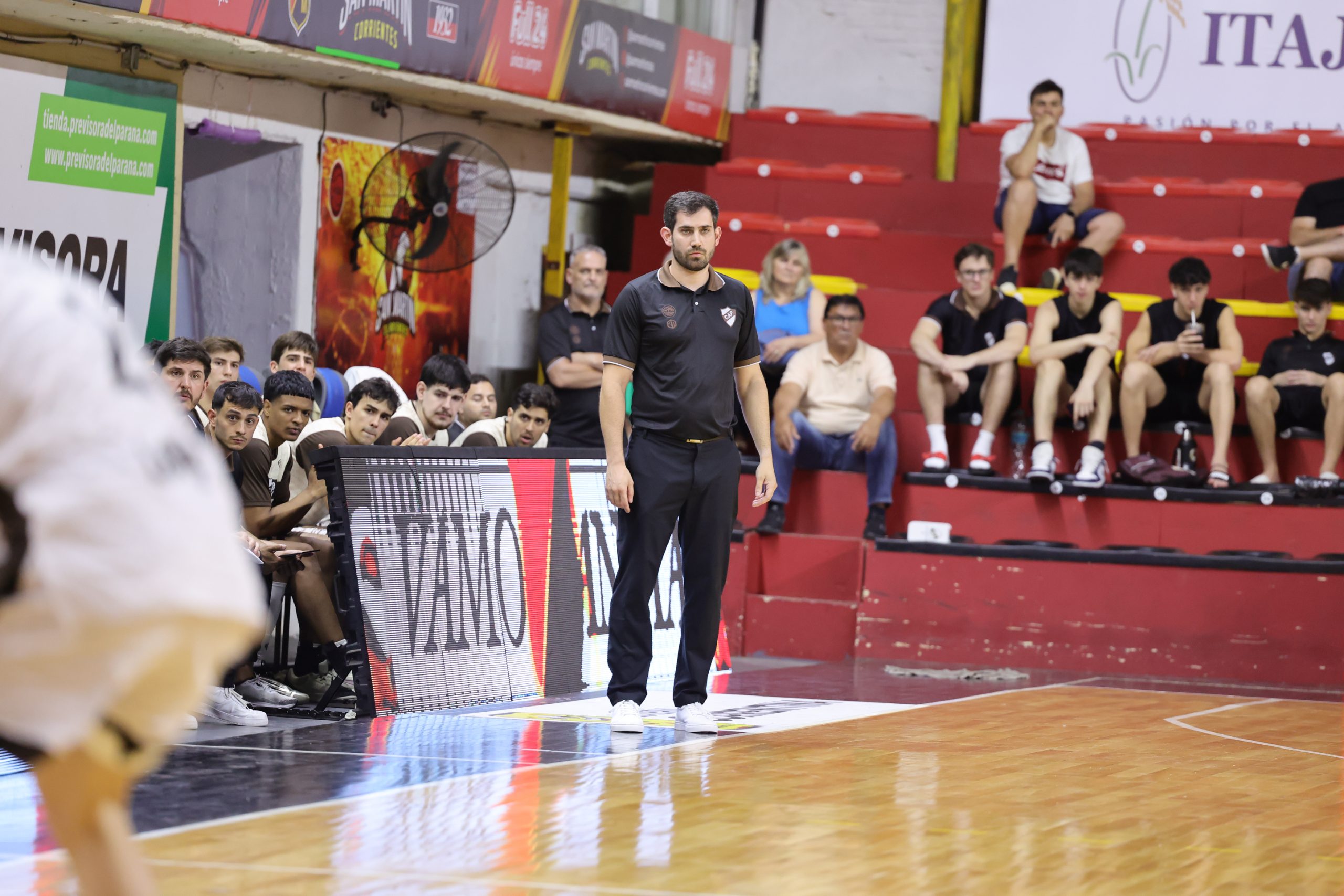 Desde la previa, el partido prometía y mucho, ya que ambos equipos llegaban con un récord de 6-5 y en busca de seguir luchando en la zona alta de la tabla. Los primeros minutos reflejaron esa expectativa, con un juego dinámico por ambos lados, intenso y muy físico. El Marrón encontró su vía de gol rápidamente desde las manos de Agustín Jara, quien anotó 8 unidades y fue protagonista en el parcial de 13-8 a favor de Tense, lo que obligó a Gabriel Revidatti a pedir tiempo muerto promediando el cuarto. Tras la pausa, el Gallo respondió de inmediato y propuso un ida y vuelta constante, donde supo ser prolijo en los detalles para cerrar el segmento al frente por 23-20.