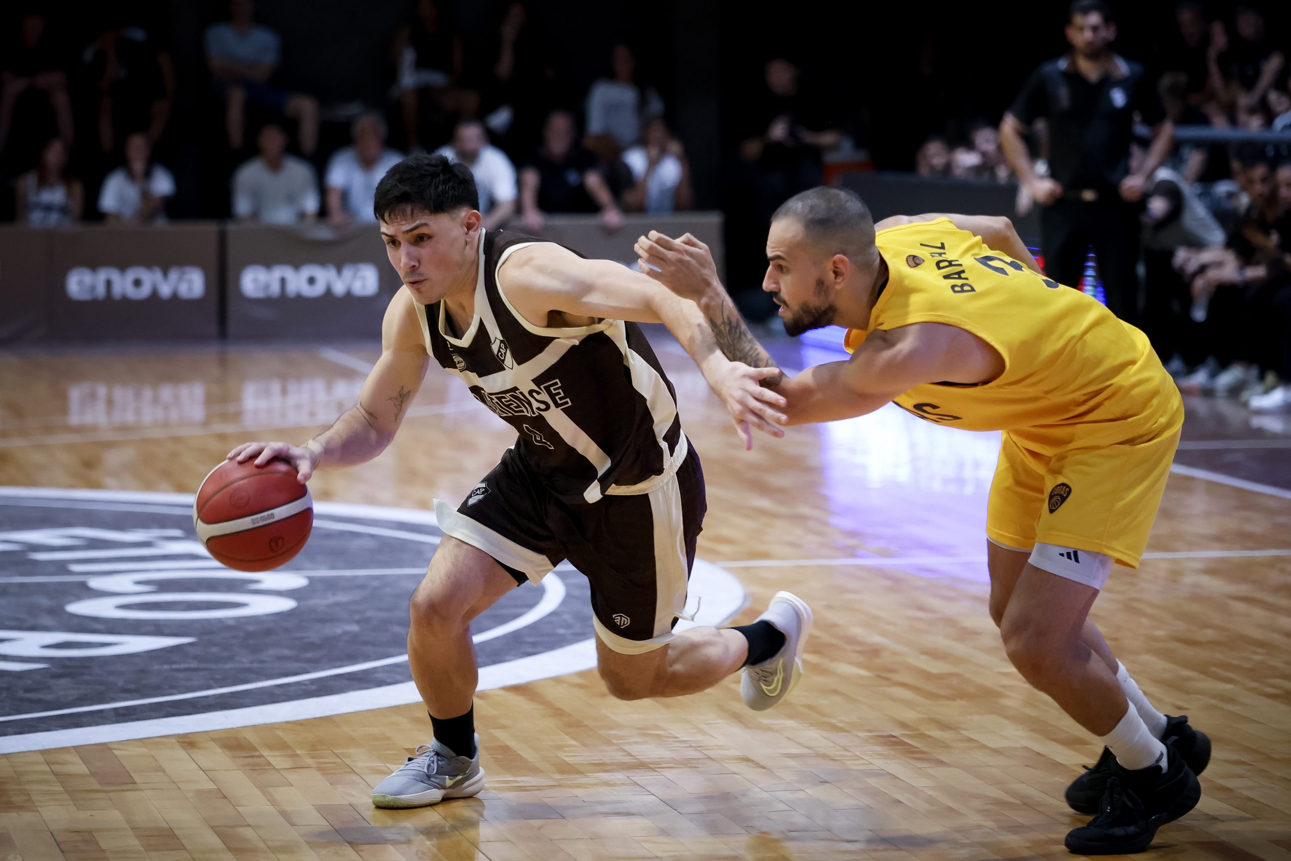 A diferencia del juego de ida en Núñez, los primeros minutos del partido se destacaron por una paridad muy latente e imprecisa por momentos. El Calamar quiso proponer un estilo vertical y dinámico, pero las pérdidas de balón y la falta de precisión en los lanzamientos no le jugaron una buena pasada. Mientras tanto, la visita buscó propuestas más estacionadas y un básquet sistemático, apostando por un juego colectivo. El Tachero se apoyó en el goleo de Marcos Delía y Federico Zezular, mientras que en el Calamar el destacado fue Agustín Jara con 9 unidades. El primer segmento quedó en manos del Aurinegro por 17-15.