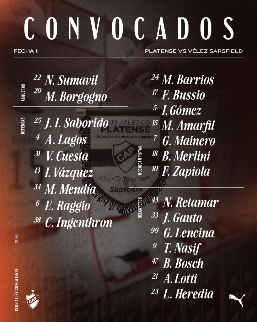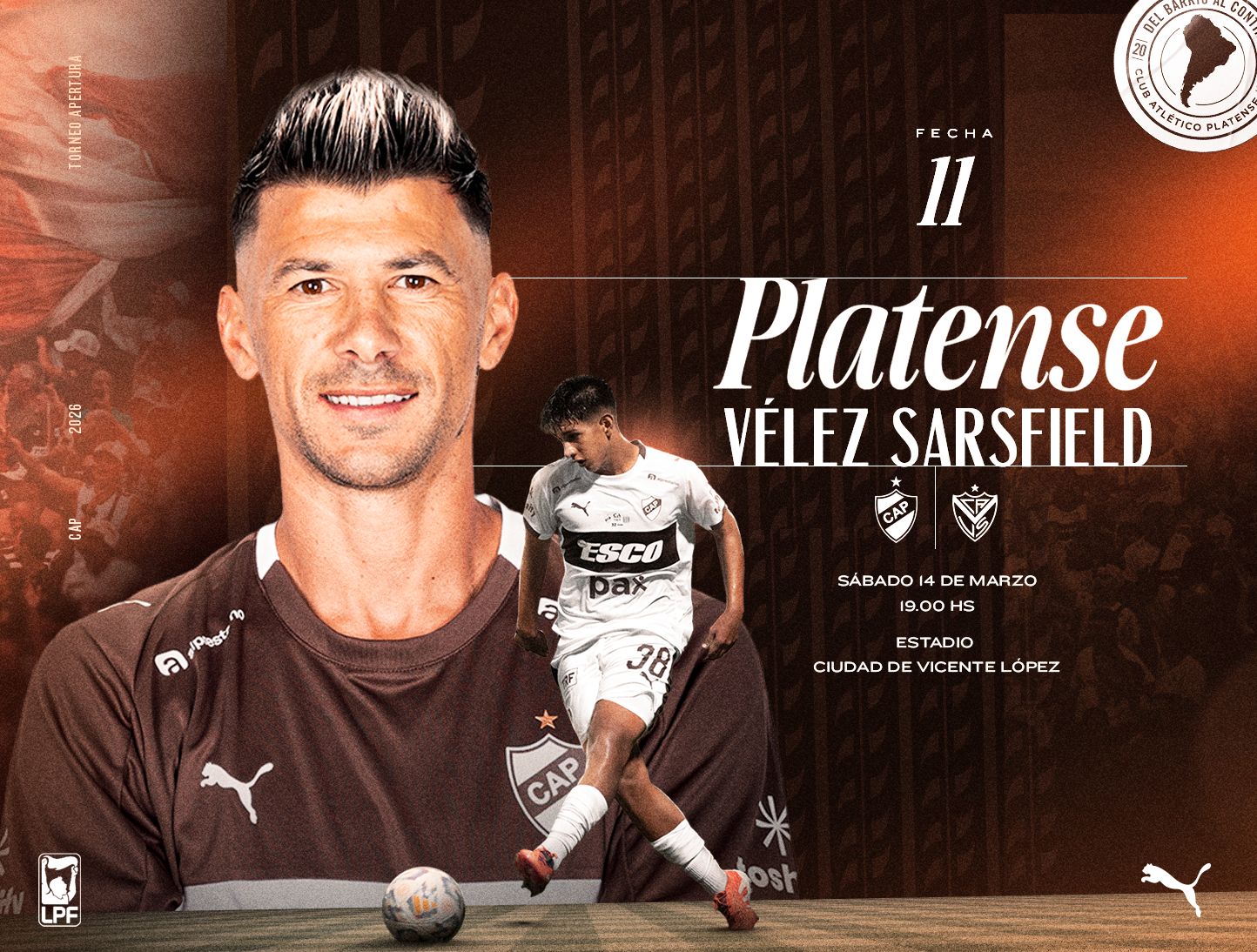 Platense se enfrentará con Vélez Sarsfield, este sábado desde las 19.00 horas en el estadio Ciudad de Vicente López, por la fecha 11 del Torneo Mercado Libre 2026. El juez del encuentro será Ariel Penel y la televisación estará a cargo de ESPN Premium.