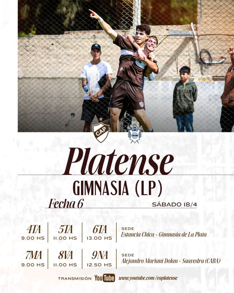 Las inferiores de Platense disputarán, este Sábado 18 de Abril, la sexta fecha del torneo de Juveniles de la Liga Profesional 2026. El Calamar se enfrentará ante Gimnasia y Esgrima de La Plata, que recibirá a nuestras tres categorías más grandes en Estancia Chica. Por su parte, los más chicas serán locales en el Predio Alejandro Mariani Dolan.